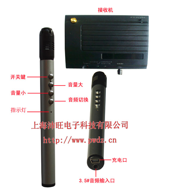 笔式形状麦克风(发射器)含充电电池只有20g重。方便使用者随身携带,既干净卫生又容易管理。